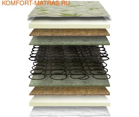 "Боннель", Термовойлок - 0,5 см, Натуральный латекс - 2 см, Кокос - 1 см, Ткань "ЖАККАРД" на глубокой рельефной стёжке. H=22 см.