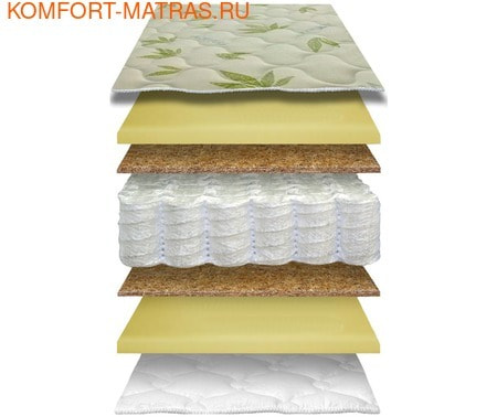 СОСТАВ: "Полинг" (256 пружин/м2), Кокос - 1см, Латекс искусственный - 3см, Хлопковая ткань на глубокой рельефной стёжке. H=23 см