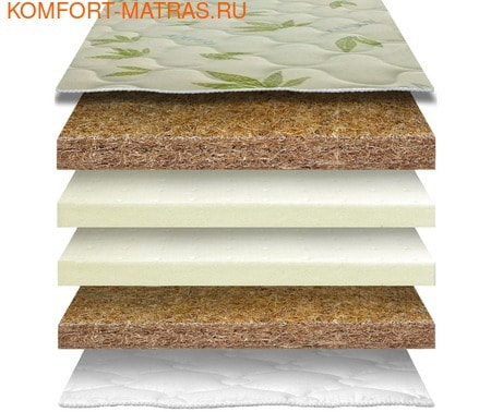 СОСТАВ: Латексированный Кокос - 3см, Латекс натуральный - 3см, Хлопковая ткань на глубокой рельефной стёжке. H=15 см.