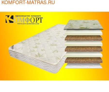 СВОЙСТВА: Беспружинный упругий, плотный матрас. Благодаря сочетанию слоев натурального латекса и койры имеет две разные по комфортности стороны.