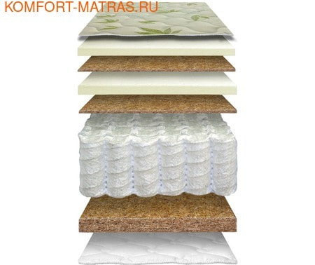 СОСТАВ: "Полинг" (256 пружин/м2), Латекс натуральный - 2см,Кокос - 1см, Латекс искусственный - 1см,Кокос - 1см ; Кокос - 3см, Хлопковая ткань на глубокой рельефной стёжке. H=23 см.