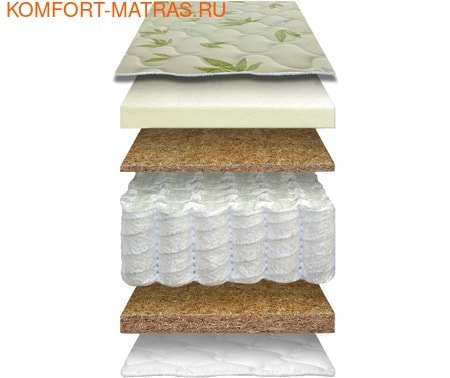 "Полинг" (256 пружин/м2), Латекс натуральный - 2см , Кокос - 1см; Кокос - 2см, Хлопковая ткань на глубокой рельефной стёжке. H=20 см.
