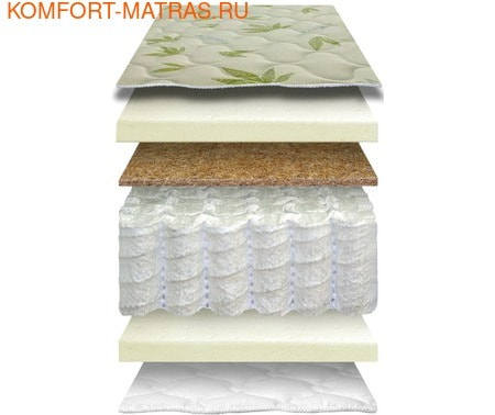 СОСТАВ: "Полинг" (256 пружин/м2), Латекс натуральный - 3см ; Кокос - 1см , Латекс натуральный - 2см, Хлопковая ткань на глубокой рельефной стёжке. H=21 см.